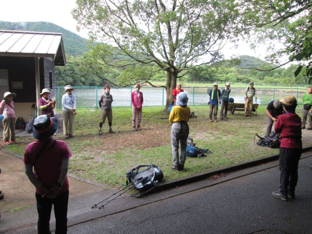 心配だった暑さも幾分和らぎ秋の気配が少し感じられるようになり、天気に恵まれ登山日和。今日の山は静岡県と愛知県の県境に連なる湖西連峰と呼ばれる山域、☆1つ半で皆が参加しやすく、大先輩から新入会員まで幅広く、マイクロバスと乗用車2台での山行。