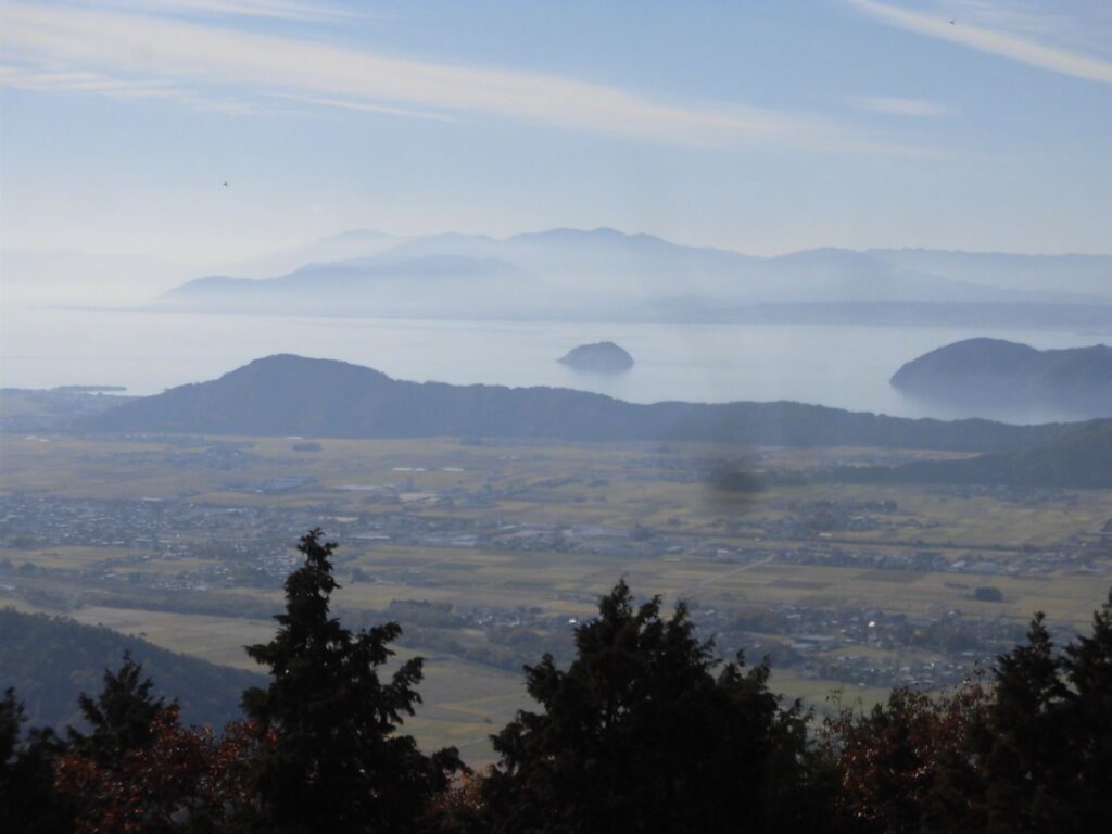杉木立 紅葉 落ち葉の急坂 タカノツメ カエデ 六地蔵 黄金のブナ ソヨゴ 窪んだ道脇に延々とイワウチワ ナメコの株姿 地元の小学生の看板に「この山は僕たちの宝物」感動しました。下山途中、琵琶湖の眺めも良く竹生島も見えとても良い山行でした。