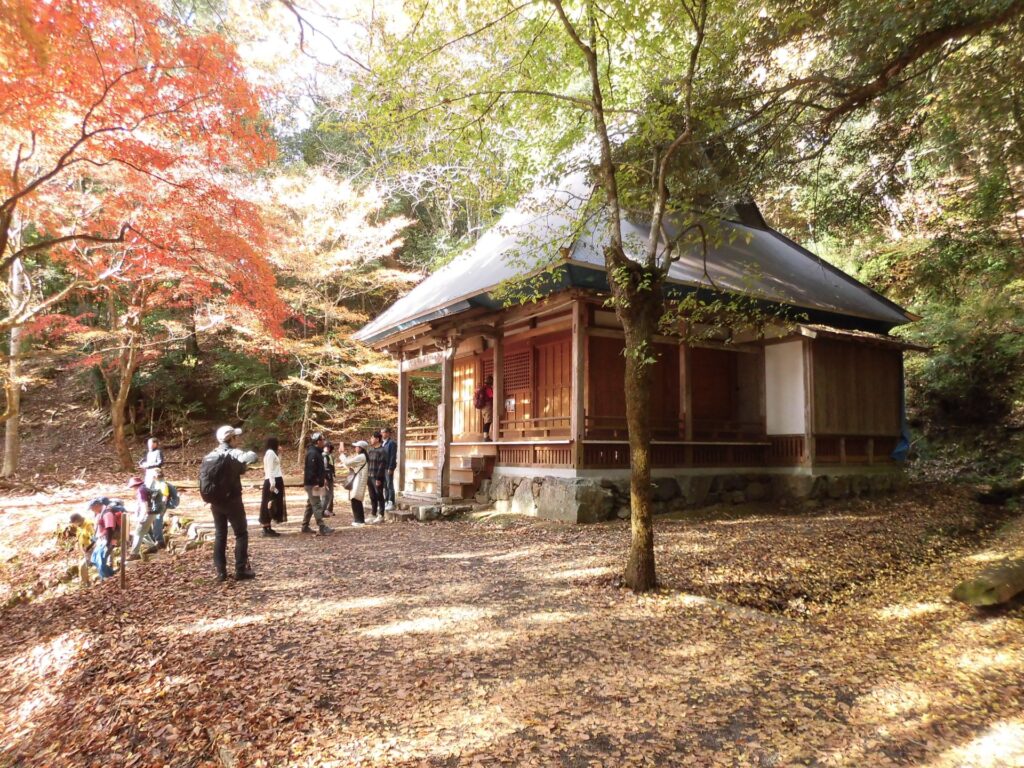 己高山の登山口は鶏足寺の近くに位置しており、登山道の登り口は急登が続く為この季節はで道が落ち葉で埋もれ滑りやすい道が多く気をつけて登りました。紅葉を楽しみ古き歴史を感じてとても良かったです。