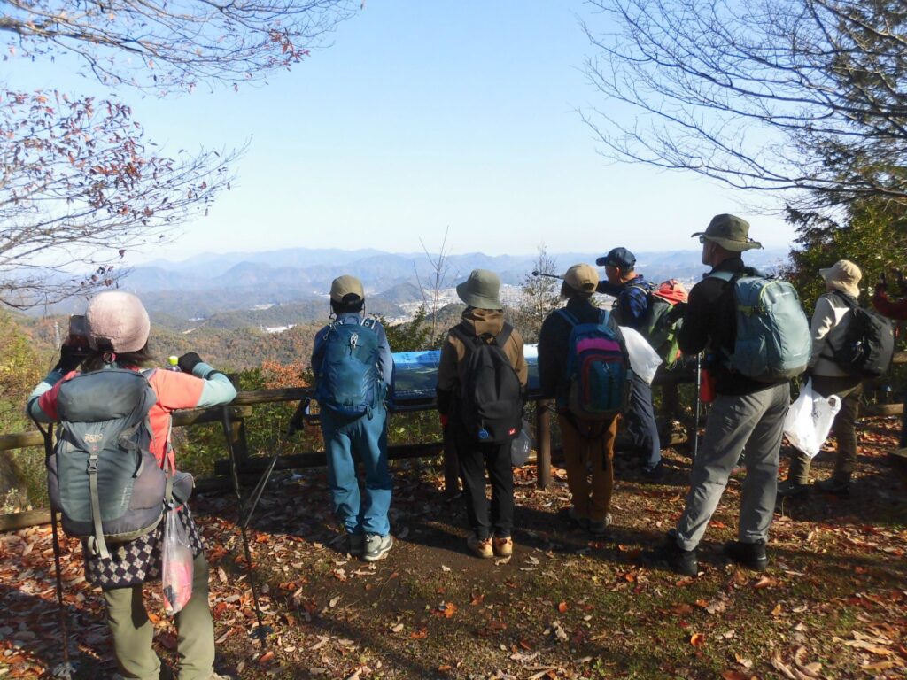 松尾池P8:35・・・岩舟山南峰9:10・・・松尾池P9:30・・・南尾根登山口9:40・・・百々ケ峰10:50~11:00・・・峠東屋(ゴミ回収、食事、集合写真、新人さん及び体験山行者の自己紹介)11:10~11:55・・・権現山12:00・・・白山展望広場12:15・・・萩の滝・・・松尾池P12:45